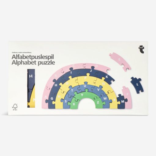 Introducer dine små til alfabetet med dette levende og engagerende alfabetpuslespil. Puslespillet er lavet af FSC-certificeret træ, måler 1,5 x 27 x 14 cm og har 26 farverige bogstaver, som vil hjælpe dit barn med at lære alfabetet på en sjov og interaktiv måde. Puslespillet er perfekt til børn fra 2 år og opefter, og det er både lærerigt og underholdende., Alfabetpuslespil.