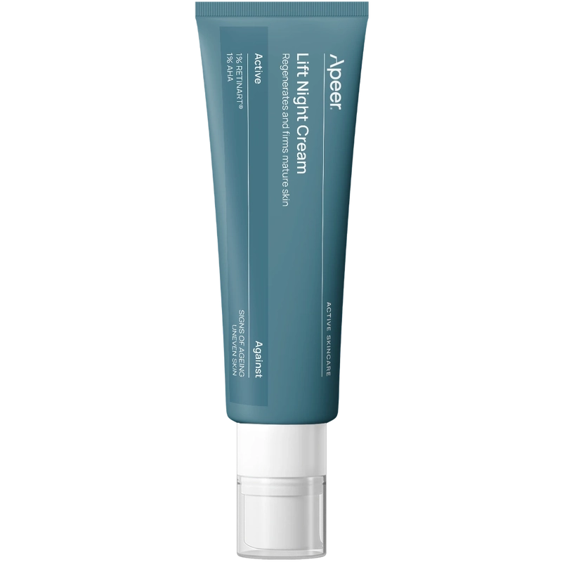 Apeer Lift Night Cream er en effektiv anti-age natcreme til moden hud. Den er beriget med RetinART, den næste generation af naturlig retinoid, som understøtter hudens naturlige fornyelsesproces, men uden at forårsage hudirritation og rødme, som man kan op, Apeer Lift Night Cream 50 ml.