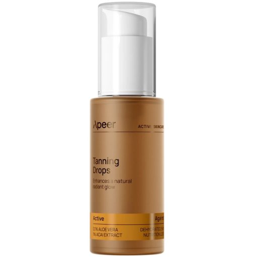 Apeer Tanning Drops er det sunde alternativ til en glødende og solkysset hud. Disse selvbruner dråber kan anvendes både på kroppen og i ansigtet, hvor naturlige DHA-molekyler skaber en glød, når de reagerer med aminer og peptider i huden. Ekstrakt fra aca, Apeer Tanning Drops 30 ml.
