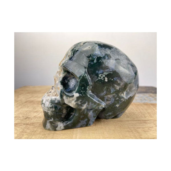 Aquatic agate skull. Beautifully handcarved. Memento mori. Has awesome inclusions and geodes. Size:Â 9Ã7.5Ã11.4 cm. Weight:Â 945 g. ONLY THE DISPLAYED MODEL FOR SALE, AS THIS ONE HAS ONLY BEEN MADE AS SHOWN IN THE PICTURE, Aquatic agate skull.