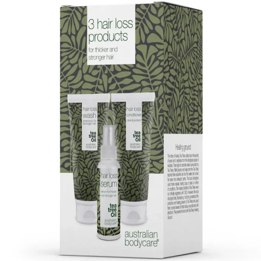 Australian Bodycare 3 Hair Loss Products er en sampak med 3 produkter, som giver dig gode betingelser for en sund hovedbund og et stærkt og kraftigt hår. Pakken indeholder shampoo, balsam og hovedbundsserum, som kan bruges dagligt af alle, der oplever hår, Australian Bodycare 3 Hair Loss Products.