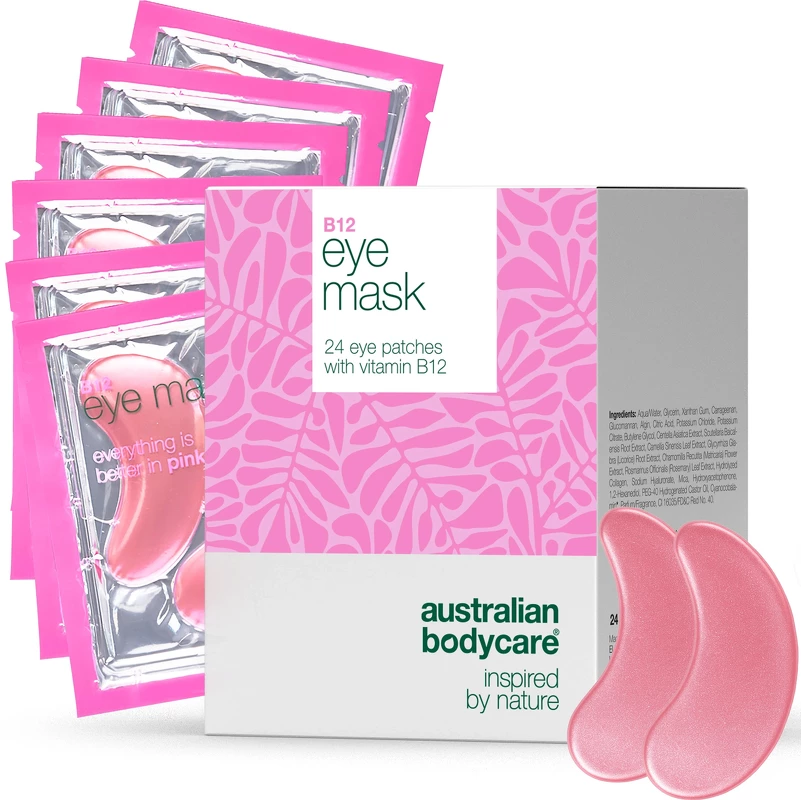 Australian Bodycare B12 Eye Mask er en pakke med fantastiske hydrogel-øjenmasker, som effektivt modvirker trætte øjne. Mørke rande, poser under øjnene og fine linjer kan få dig til at se træt ud – selv når du føler dig frisk. Den sarte hud omkring øjnen, Australian Bodycare B12 Eye Mask 24 Pairs.