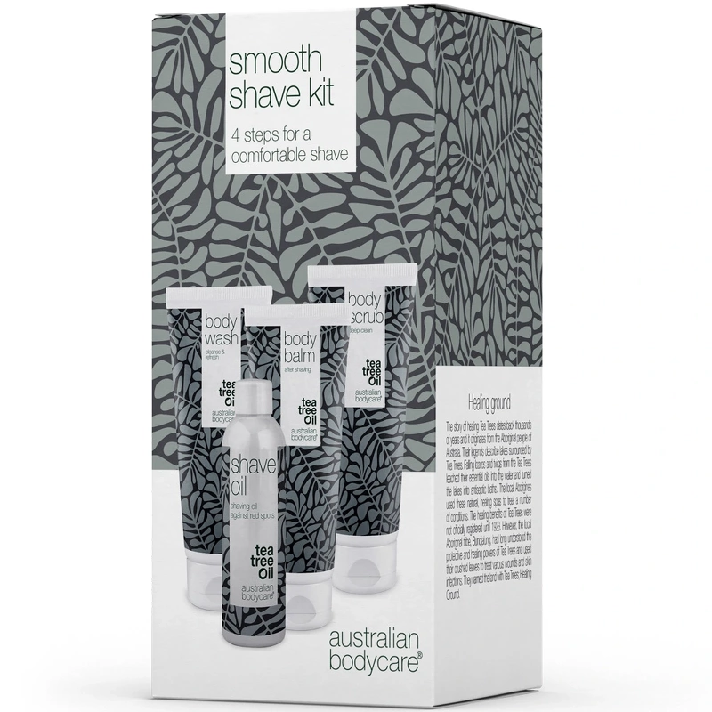 Australian Bodycare Smooth Shave Kit er en sampak med 4 barberingsprodukter, som holder huden ren og beskyttet inden, under og efter barbering for et pænt og glat resultat. Hvis du døjer med røde barberknopper, indgroede hår eller rødme i huden efter hårf, Australian Bodycare Smooth Shave Kit.