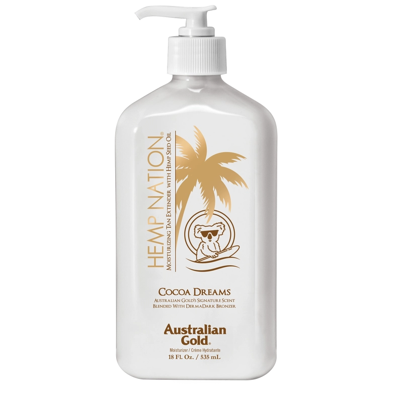 Australian Gold Hemp Nation Bodylotion Cocoa Dreams er designet til at hjælpe din solbrune farve til at holde lige så længe som dine ferieminder, og hjælper også med at forberede huden med fremtidige tannings resultater! Din solbrune kulør genoplives af p, Australian Gold Hemp Nation Bodylotion Cocoa Dreams 535 ml.