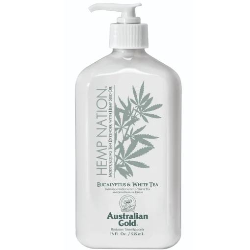 Australian Gold Hemp Nation Bodylotion Eucalyptus og White Tea er en Tan Extender body lotion, der er inspireret af spa-hudpleje og tilbyder teknologi til reparation af ødelagt hudbarriere. Et ideelt valg for dem med meget tør hud og dem, der leder efter, Australian Gold Hemp Nation Bodylotion Eucalyptus & White Tea 535 ml.