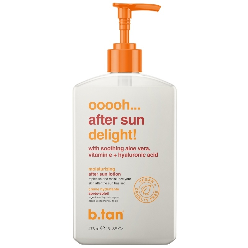 b.tan Ooooh Aftersun Delight… Aftersun Lotion er en beroligende aftersun lotion, der efterlader huden dejlig afkølet og blød. Denne lotion er spækket med fugtgivende ingredienser, herunder aloe vera, E-vitamin og hyaluronsyre, som beriger kroppen med fu, b.tan Ooooh Aftersun Delight… Aftersun Lotion W. Pump 473 ml.