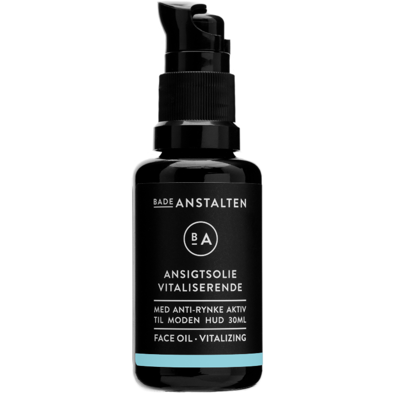 Badeanstalten Face Oil Vitalizing er en vitaliserende olie med anti-rynke aktiv i form af 'Marine Blue Vital C', som er fremstillet af microalger, der stimulerer hudens kollagendannelse og hjælper med at mindske rynker og fine linjer. Økologiske p, Badeanstalten Ansigtsolie Vitaliserende 30 ml.