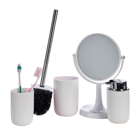 Mærke: Berilo, Type: Badeværelsestilbehør, Farve: Hvid, Materiale: Polypropylen, Indeholder: Spejl, toiletbørste, glas, sæbedispenser., Gtin: 8430852177568,, Berilo Badesæt 4 Dele Hvid.