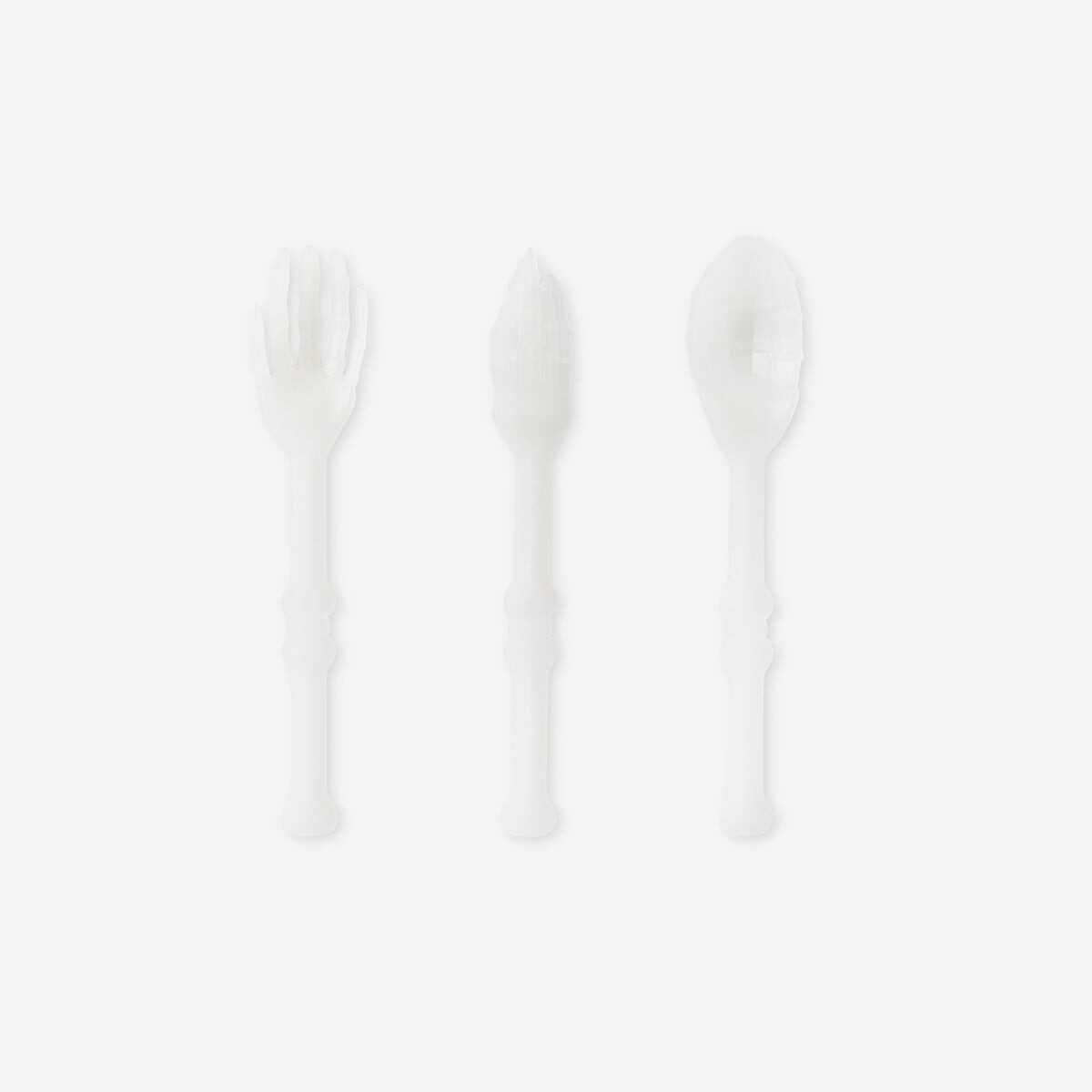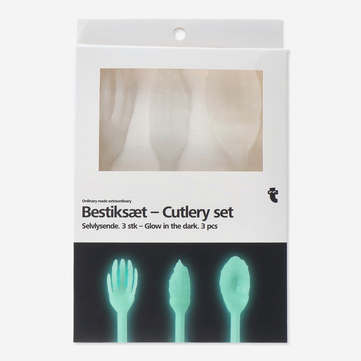 Oplys din madoplevelse med vores Glow-in-the-Dark-bestiksæt. Dette hvide sæt består af 3 dele lavet af plastmateriale, som giver et uhyggeligt touch til din Halloween-fest eller temaarrangement. De benformede redskaber er både praktiske og sjove og tåler opvaskemaskine og er helt sikre til mad. Omfavn den uhyggelige stemning, og nyd et iskoldt måltid med vores Glow-in-the-Dark bestiksæt!, Bestiksæt. Selvlysende.