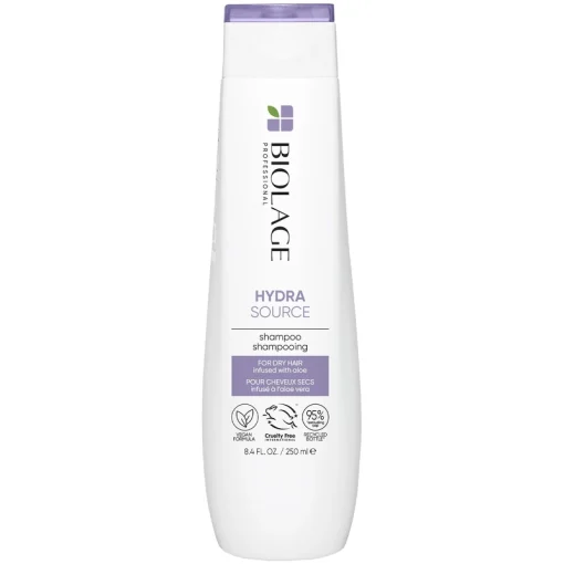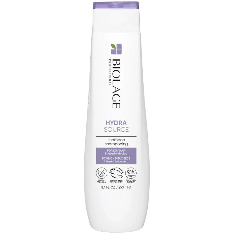 Matrix Biolage Hydrasource Shampoo er til tørt eller skadet hår. Denne luksuriøse shampoo nærer og renser håret, og indholdet af Aloe Vera gør håret utroligt blødt, og er med til at genoprette fugtbalancen i tørt hår. Håret bliver samtidig let at arbejde, Biolage HydraSource Shampoo 250 ml.