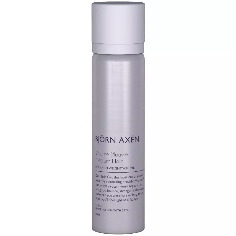 Björn Axén Volume Mousse Medium Hold er en plejende og volumegivende hårskum, der er super nem at arbejde med. Det er en letvægtsskum, som giver et medium hold, som føles natuligt i håret. Den virker varmebeskyttende, så den er god at bruge inden føntørre, Bjorn Axen Volume Mousse Medium Hold 80 ml.
