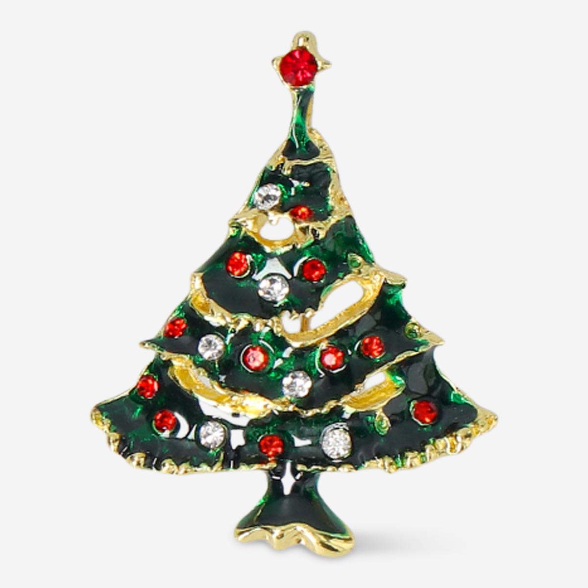 Tilbehør til den kommende Jul sammenkomster med den smukke broche med skinnende farvede sten. Brochen vil være et flot element til ethvert outfit og vil også være en dejlig gave. Brochen er lavet af metal og glas og måler 4 x 3,5 x 1 cm., Broche.