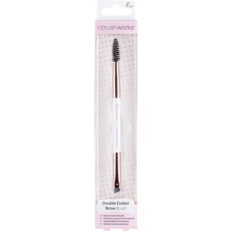 Brushworks Double Ended Brow Brush er en perfekt duobørste til dine øjenbryn. Den skrå, flade pensel bruges til farve, så du nemt kan udfylde og forme dine bryn. Herefter bruges spooliebørsten til at blende farven naturligt ind, samt rede og tæmme brynene, Brushworks Double Ended Brow Brush.