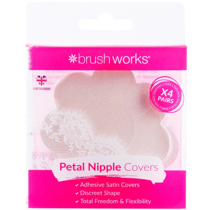 Brushworks Nude Satin Nipple Covers er smarte brystvorteskjulere til engangsbrug, som sikrer dig diskret og glat dækning under ethvert outfit, når du ikke har BH på. Brushworks Nude Satin Nipple Covers er selvklæbende og lavet i glat, nude satin, som give, Brushworks Nude Satin Nipple Covers – 4 Pairs.