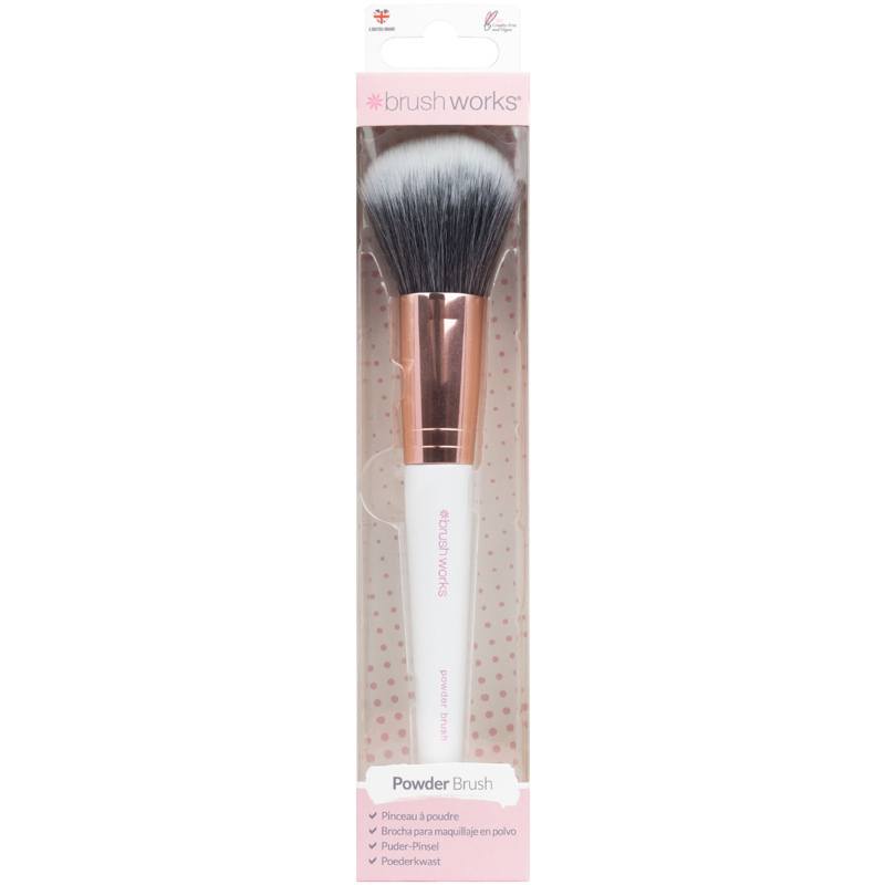 Brushworks Powder Brush er en superlækker pudderbørste, som er udviklet specielt til påføring af løst og fast pudder, samt foundation. Den har et stort, fyldigt børstehoved besat med lange, bløde, syntetiske hår i en afrundet form, der gør det let at påfø, Brushworks Powder Brush.
