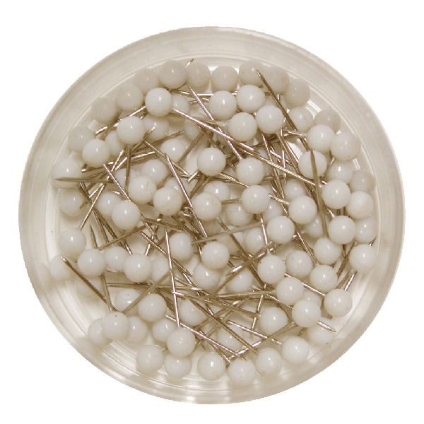 Büngers map pin  Kortnåle Æske a 100 stk. Længde på nål: 19mm Hoved: 4mm Farve: Hvid