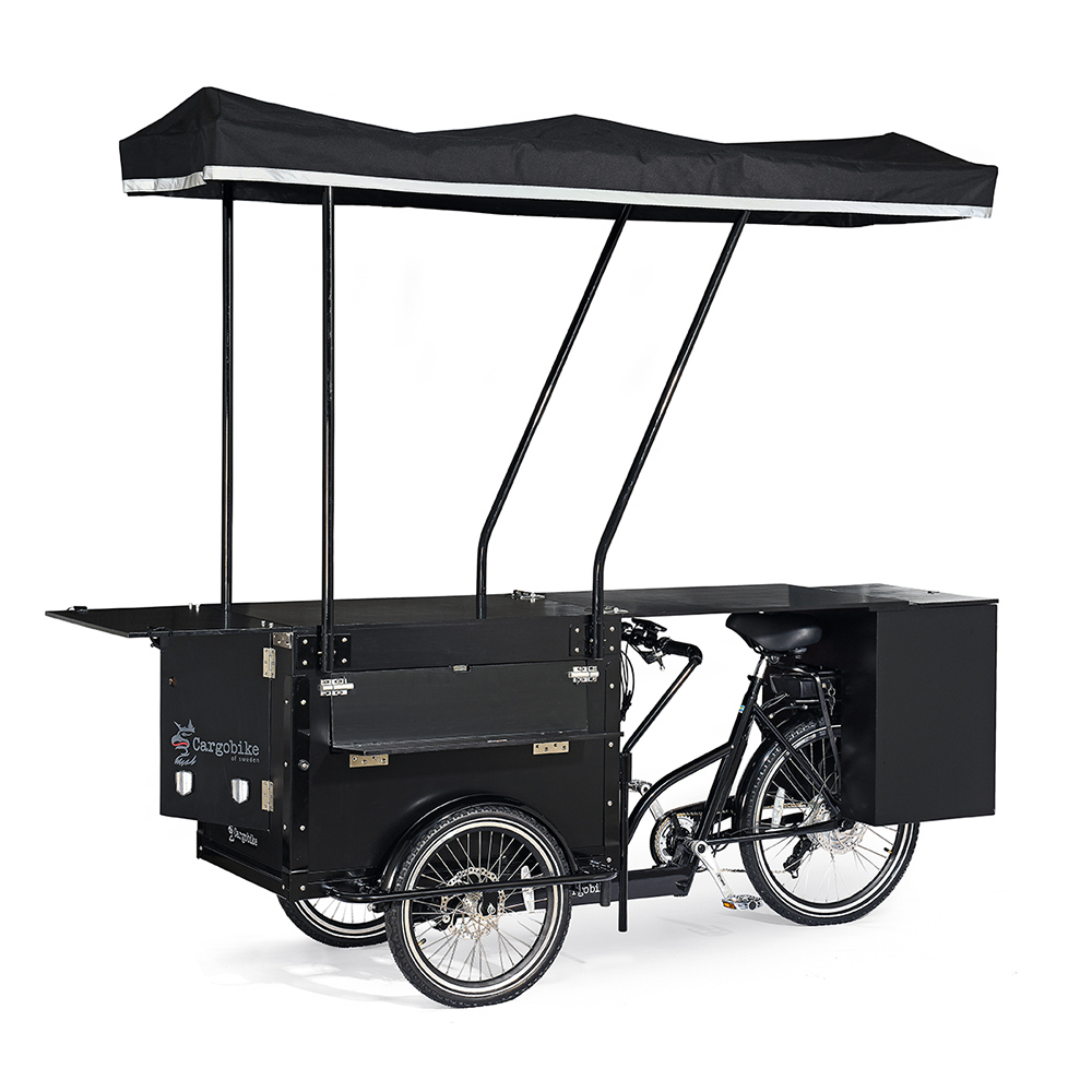 Café Electric giver uendelig mange muligheder for at udvikle din virksomhed. Den lader dig være der, hvor dine kunder er, og du kan finde plads på de steder, du synes er bedst! OBS: Denne ladcykel hjemtages på bestilling. Kontakt os derfor i god tid, hvis, Cargobike Café Electric Hydraulic El-ladcykel.