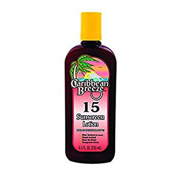 Caribbean breeze sunscreen lotion 15 250ml Denne eksklusive blanding beriget med vitaminer, naturlige botaniske ekstrakter, grøn te og granatæble vil gøre din hud fugtig, samtidig med at den beskytter mod solens stråler. Anvendes dagligt, kan denne ri