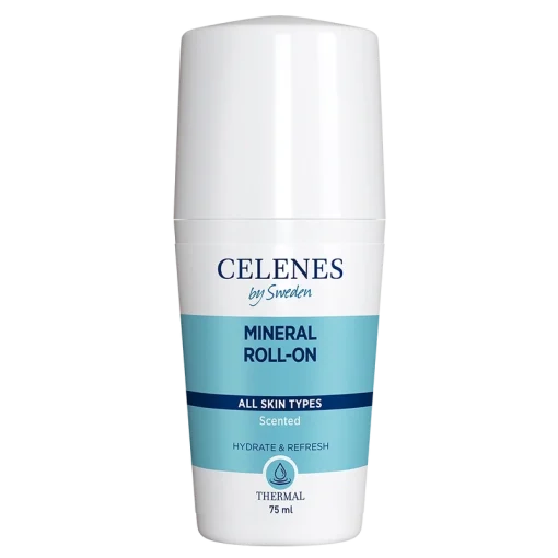 Celenes Thermal Roll-On Scenteder beriget med termisk vand og naturligt mineral indhold, som forhindrer dannelsen af ​​svedlugt uden at tilstoppe svedkirtlerne. Celenes Thermal Roll-On Scented lindrer følsom hud med bisabolol. Celenes Thermal Roll-On, Celenes Thermal Roll-On Scented 75 ml.