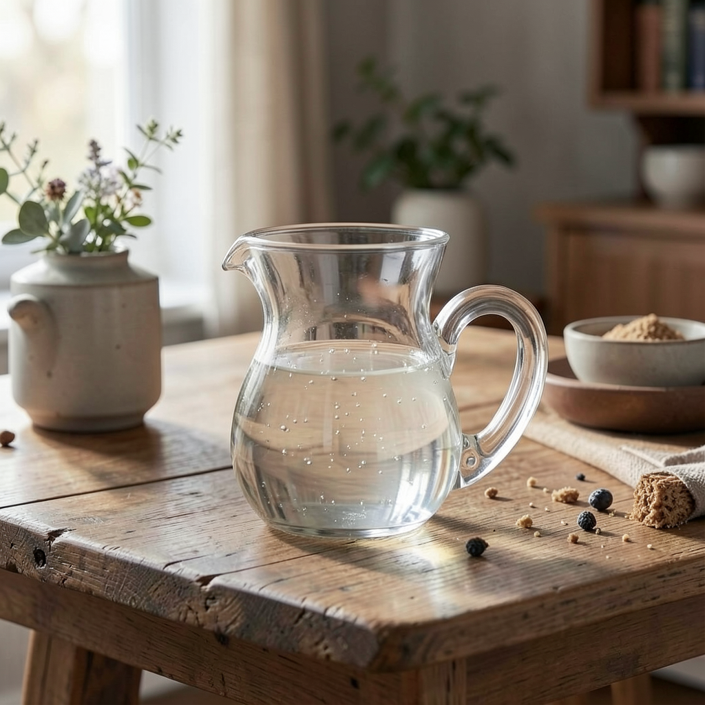 Elegant gennemsigtig skænkekande i glas (8x6x8 cm / 100 ml). En smuk og praktisk tilføjelse til ethvert køkken, der også kan bruges som målebæger.