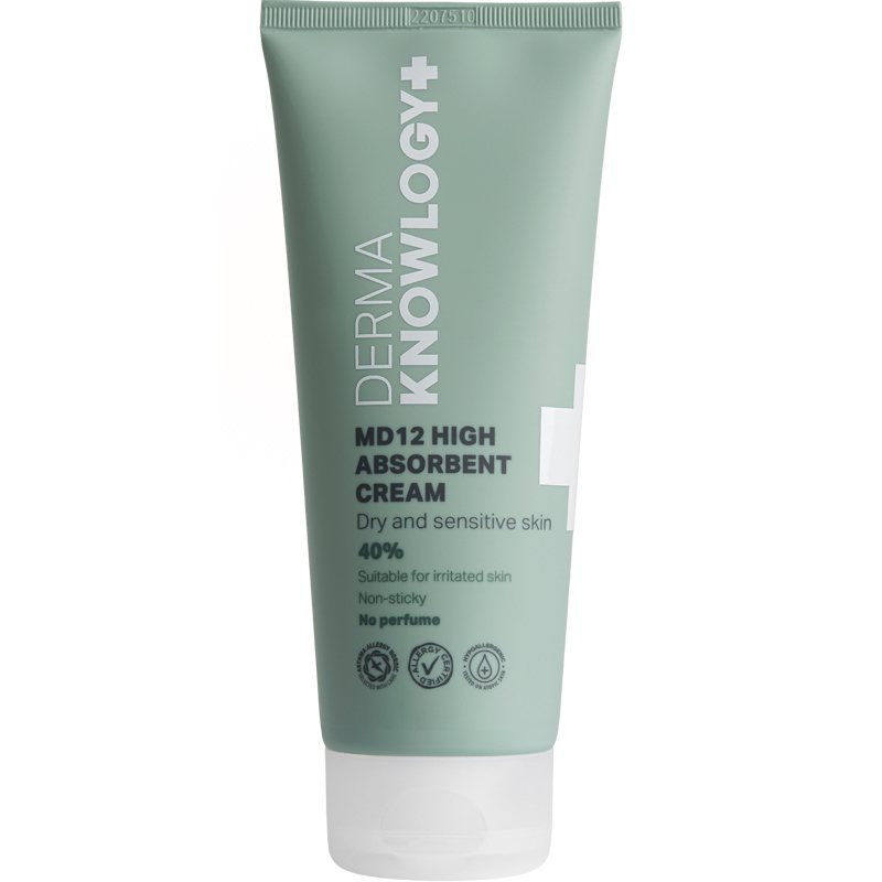 DermaKnowlogy MD12 High Absorbant Cream er en creme, som er udviklet til tør, sart hud med tendens til atopisk eksem. Den er beriget med en effektiv og allergivenlig formel, som nærer huden og styrker dens naturlige barriere, og er velegnet som daglig fug, DermaKnowlogy MD12 High Absorbant Cream 200 ml.