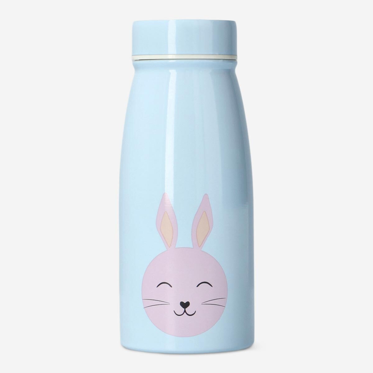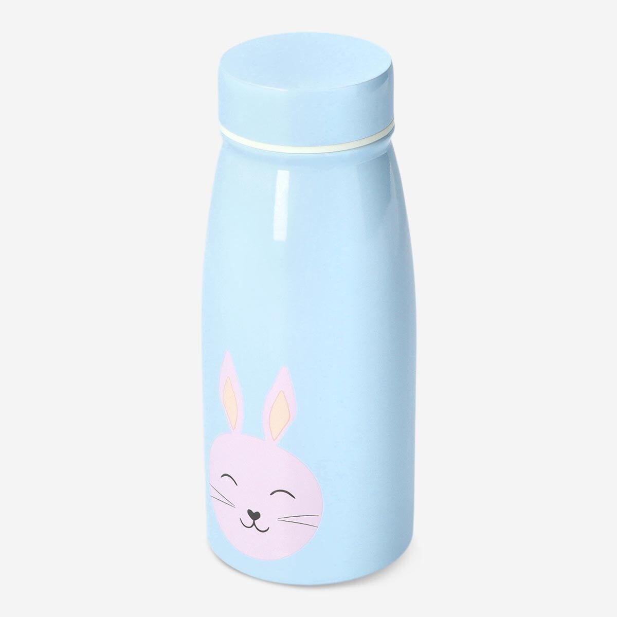 Den blå drikkeflaske med kaninmotiv er perfekt til at holde sig hydreret på farten og til at tage med i skole eller på arbejde. Drikkeflasken er kun egnet til kolde væsker. Drikkeflasken af rustfrit stål rummer 280 ml og måler 15,9 cm i højden og 6,5 cm i diameter. Den maksimale temperatur, der anbefales, er 40 grader Celsius., Drikkeflaske til kølige drikkevarer.
