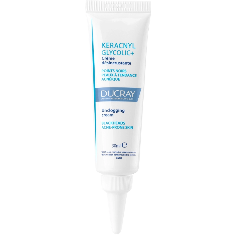 DUCRAY Keracnyl Glycolic+ Unclogging Cream er en ansigtscreme, der hjælper med at fjerne urenheder og hudorme, og er velegnet til voksne og børn fra 9 år med fedtet og uren hud. Denne creme er beriget med Glykolsyre, der renser tilstoppede porer og skånso, DUCRAY Keracnyl Glycolic+ Unclogging Cream 30 ml.