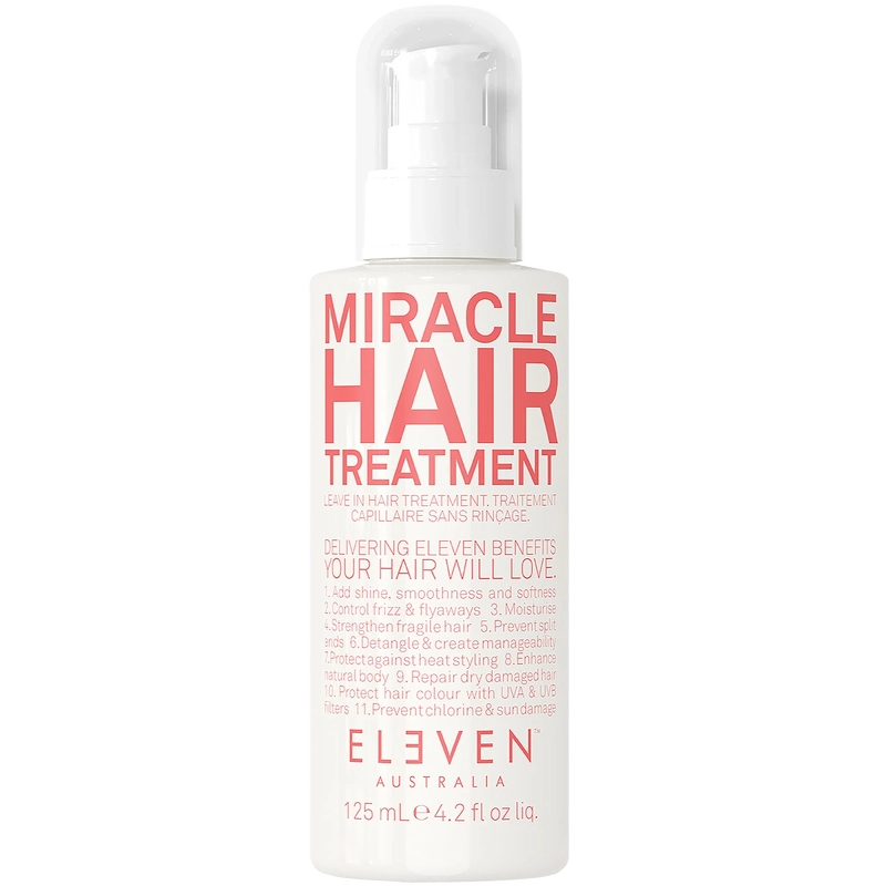 ELEVEN Australia Miracle Hair Treatment er en multifunktionel leave-in creme med 11 unikke fordele, som dit hår vil elske! Gør håret blødt, glat og glansfuldt Kontrollerer flyvsk og kruset hår Fugtgivende Styrker porøst hår Forhindrer spaltede spidser Gør, ELEVEN Australia Miracle Hair Treatment 125 ml.