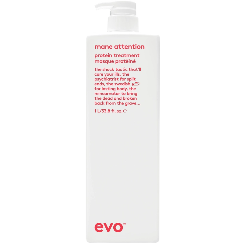 evo Mane Attention Treatment er en intens protein-rig og genopbyggende hårkur, der anbefales til et skadet og farvebehandlet hår. Denne hårkur hjælper med at styrke håret, hvilket modvirker skader og beskytter hårfarven. Derudover virker den både reparere, evo Mane Attention Treatment 1000 ml.