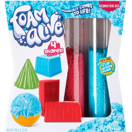 Foam Alive Geometric Set byder på masser af sjov og kreativ underholdning for børn og fem år. Det sjov foam sand, er en helt særlig og magisk blanding, der kommer til live, når du leger med det! Modeller, form, tril og rul det skøre og sjove sand i enhver, Foam Alive Geometric Set – 100g.