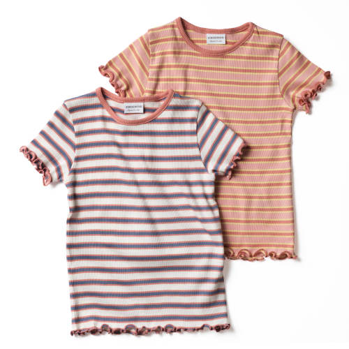 Friends t-shirt – Stribede i koral, lyserød, gul, blå, hvid – 2 stk. – Leveringstid: 1-2 dage