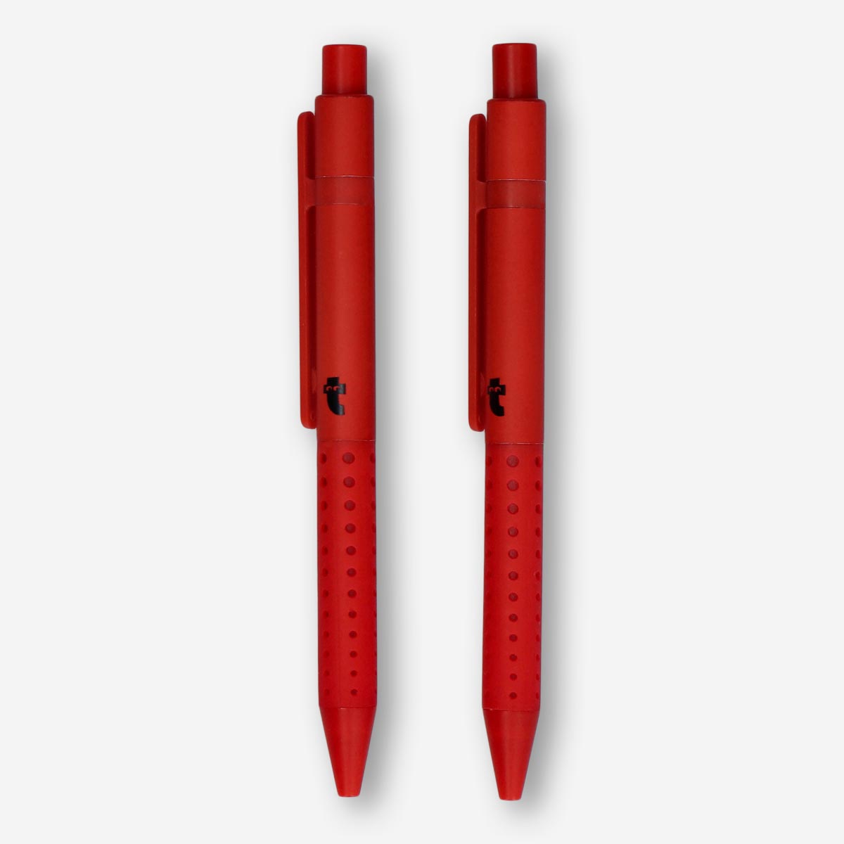 Kuglepenne. Skriver med rødt blæk. 2 stk. Fås i flere designs., Gelpenne.