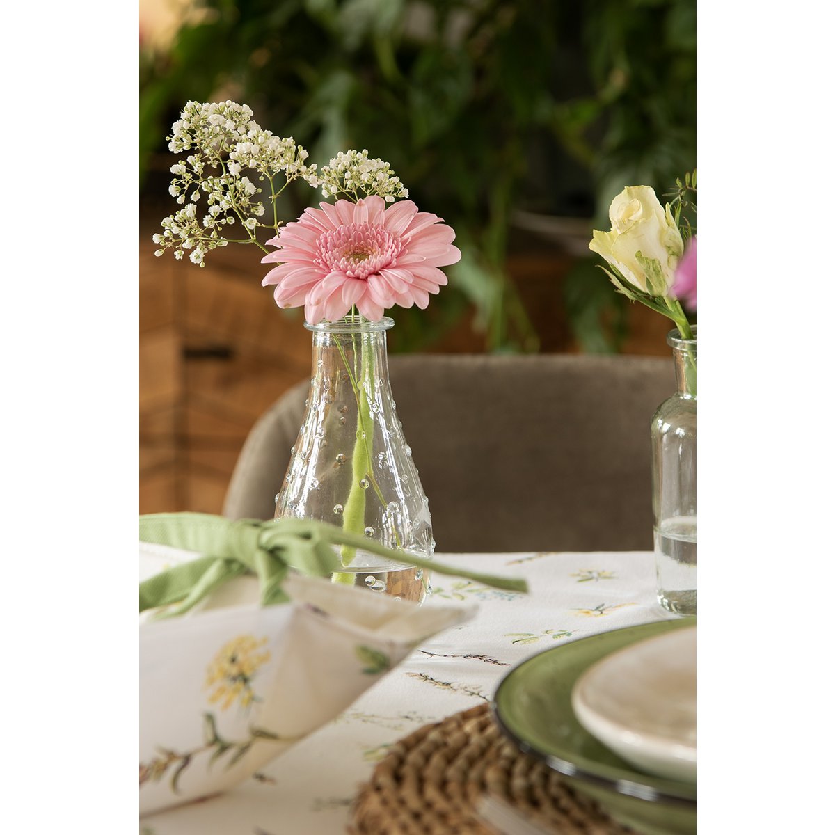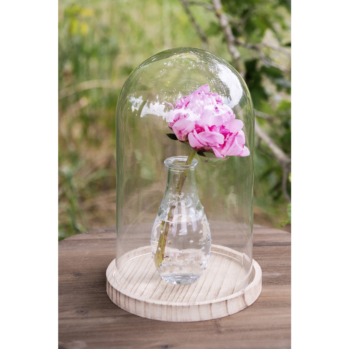Dekorativ glasvase i transparent glas med retro og vintage udtryk – perfekt til en enkelt blomst eller som fin boligdetalje.