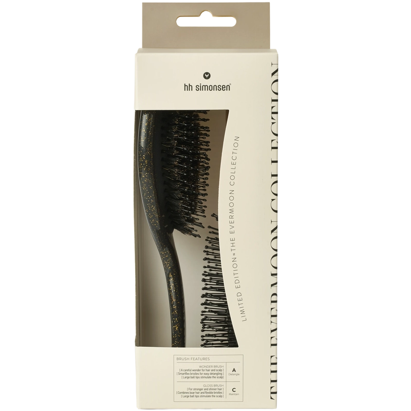 HH Simonsen Wonder og Gloss Brush – Gold er en gaveæske, som indeholder to helt fantastiske hårbørster. Wonder Brush er skabt til hensynsfuld udredning. Den er bl.a. udstyret med HH Simonsens særlige smartflex børstepigge, der mindsker risikoen for spalte, HH Simonsen Wonder & Gloss Brush – Gold (Limited Edition).