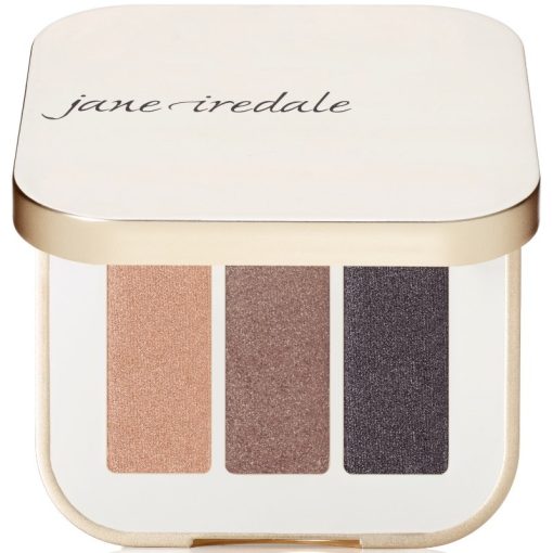 Jane Iredale PurePressed Triple Eye Shadow – Brown Sugar er en lille palette med 3 smukke øjenskygger i nude, lys brun og mørk brun/grå farver med shimmer. Den er rigt pigmenteret, og er en mineral-øjenskygge med en lækker cremet tekstur og finish. De fin, Jane Iredale PurePressed Triple Eye Shadow 2,1 gr. – Brown Sugar.