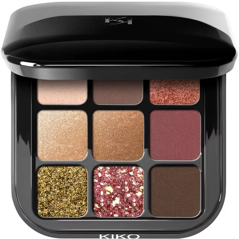 KIKO Milano Glamour Multi Finish Eyeshadow Palette – 03 Burgundy Notes er en superflot palette med 9 øjenskygger, som smukt fremhæver dine øjne med en trendy og farverig øjenmakeup. Den kan bruges til både at skabe et naturligt look om dagen og et intenst, KIKO Milano Glamour Multi Finish Eyeshadow Palette 2,5 gr. – 03 Burgundy Notes.