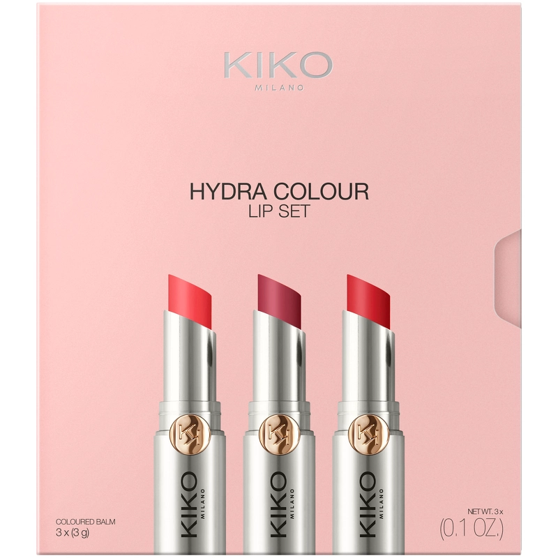 KIKO Milano Hydra Colour Lip Set – 01 Natural Harmony er en æske bestående af 3 fugtgivende læbepomader, der giver et blidt strejf af farve og glans til læberne. Læbepomaderne er beriget med A-, E- og C-vitamin og blødgørende sheasmør, som virker fugtgive, KIKO Milano Hydra Colour Lip Set 9 gr. – 01 Natural Harmony.