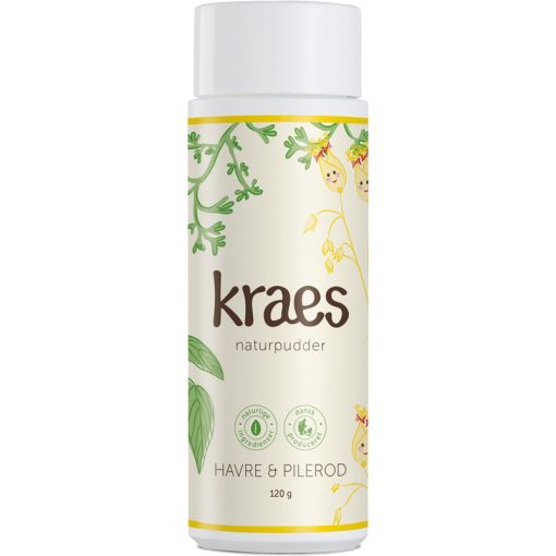 KRAES Naturpudder Havre og Pilerod er et mildt alternativ til traditionelt talkumpudder, som kan anvendes i bleområdet og i hudfolder. Dette pudder er udelukkende lavet af naturlige ingredienser, hvor blandt andet økologisk pilerod, i kombination med tapi, KRAES Naturpudder Havre & Pilerod 120 gr..
