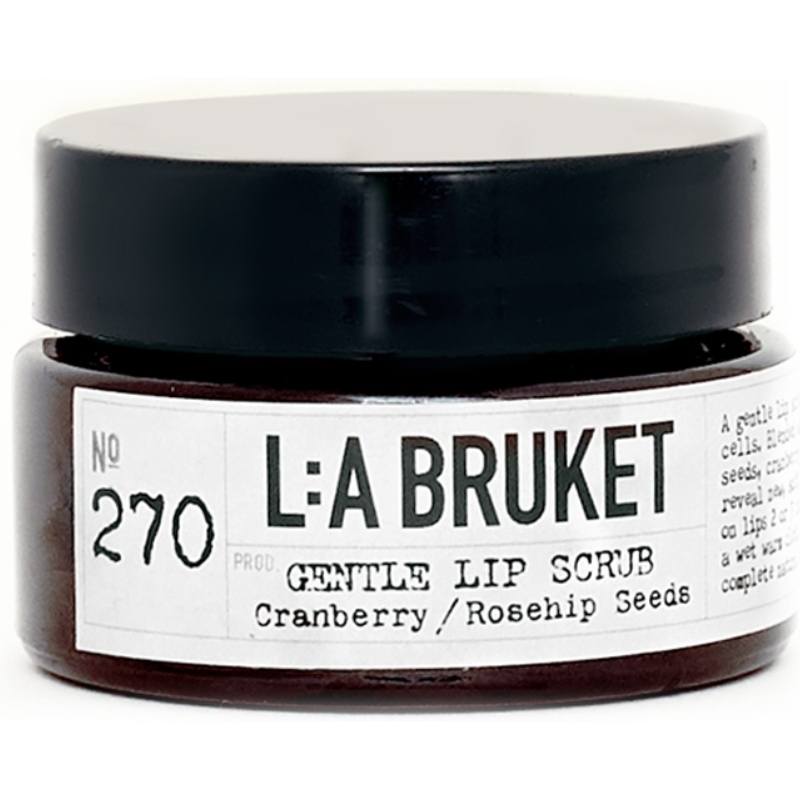 L:a Bruket 270 Gentle Lip Scrub er en lækker og effektiv scrub til læberne. Den er beriget med en unik blanding af tranebærfrø, hybenfrø og krystalliseret sukker fra betain, som giver en utrolig blid eksfoliering. Scrubben fjerner tørre hudceller, og indh, L:a Bruket 270 Gentle Lip Scrub 15 gr..