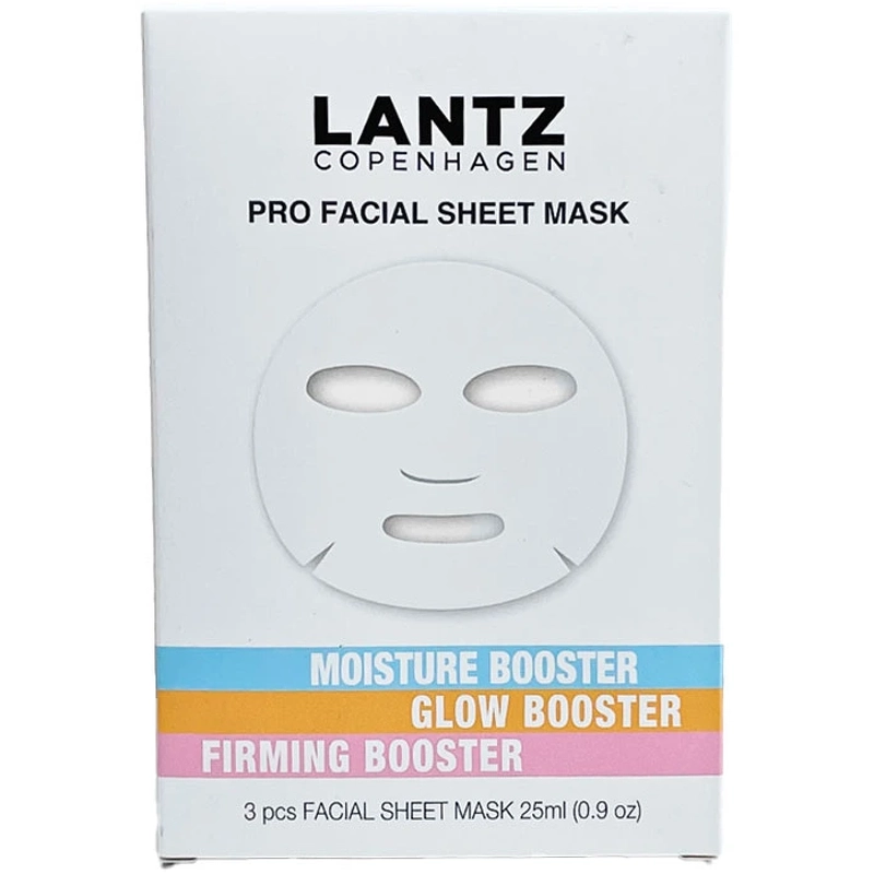 Lantz Cph Booster Box er Lantz Copenhagens skræddersyede Booster-serie. Deres Booster Boks indeholder 3 forskellige Booster Sheet Masks, hver med sit unikke fokus og potentiale. Med høje koncentrationer af aktive ingredienser giver Boosterne dig de bedste, Lantz Cph Booster Box 3 Pieces.