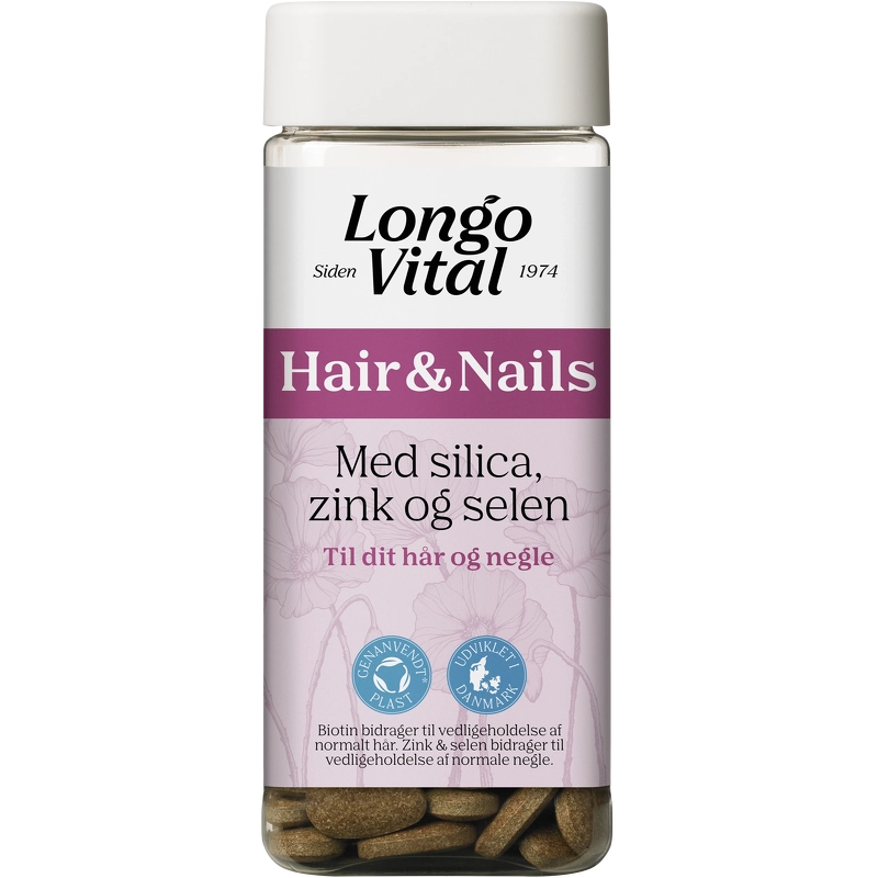 LongoVital Hair og Nails er et kosttilskud til dig, der søger et ekstra tilskud til dit hår og dine negle. LongoVital Hair og Nails er sammensat af vitaminer, mineraler, Ølgær samt Agerpadderok, der indeholder Silica. Biotin bidrager til at vedligeholde e, LongoVital Hair & Nails med silica, zink og selen 180 Pieces.