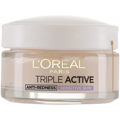 L'Oréal Paris Triple Active Sensitive Skin er en creme sensitiv hud. Hver dag udsættes huden for ydre påvirkninger som stress, forurening og UV-stråler. Denne creme virker beroligende på huden, de milde ingredienser i cremen er glycerin, sød mandel og, L'Oreal Paris Skin Cleansing Triple Active Sensitiv 50 ml.