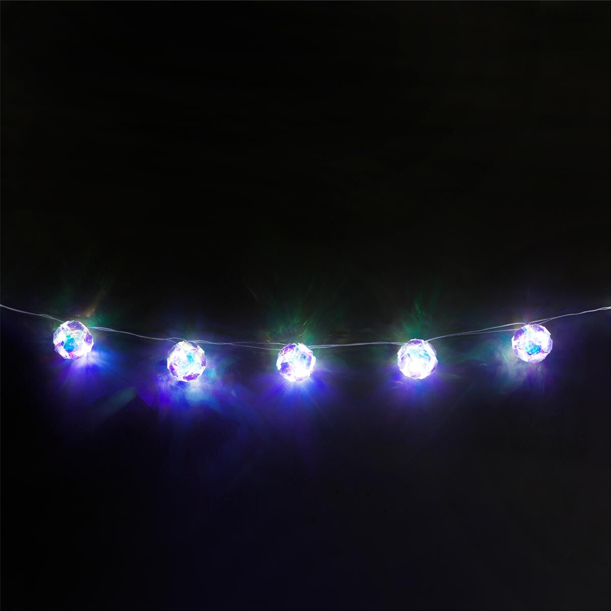 Skab hygge og pynt dit hjem med de smukke lysbånd. Lysbåndet har 10 LED-lys som holografiske kugler og måler 285 cm i fuld længde. Snorlysene bruger 2 x AA-batterier (ikke inkluderet)., Lyskæde. 285 cm.