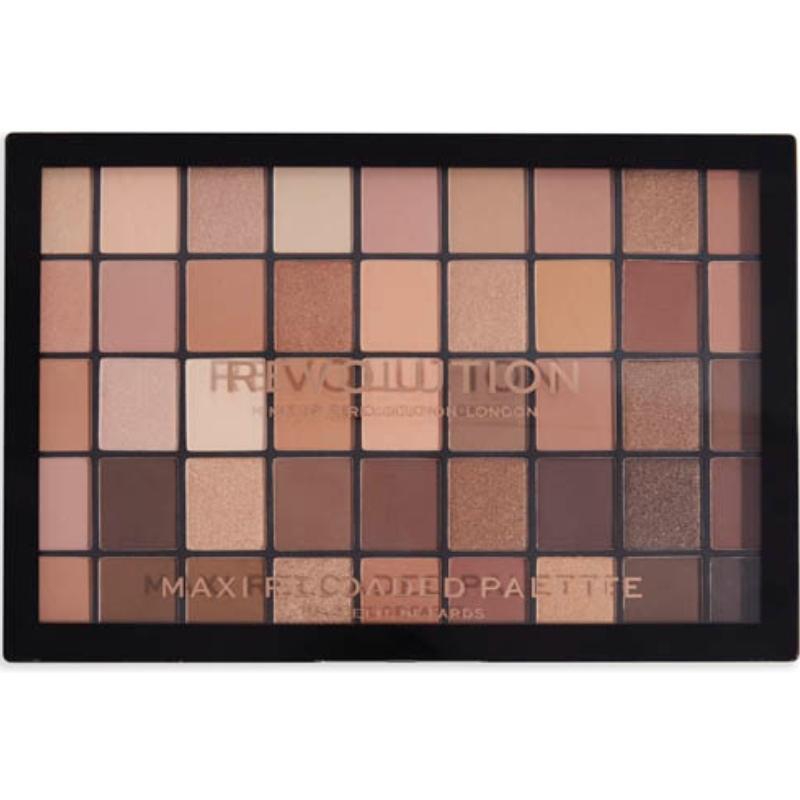 Makeup Revolution Maxi Reloaded Palette – Ultimate Nudes er en stor øjenskyggepalette med 45 smukke farver, som man kan bruge hver for sig eller kombinere. Derudover er øjenskyggerne i mat og med shimmer effekt, så man kan skabe lige præcis det look man ø, Makeup Revolution Maxi Reloaded Palette – Ultimate Nudes.