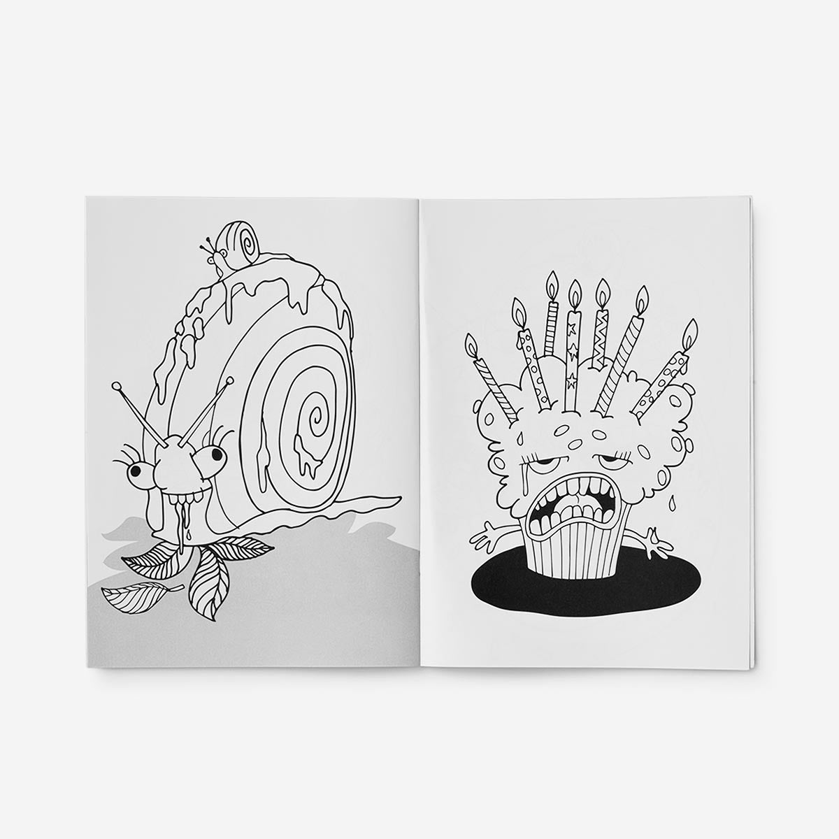 Malebog med tegninger af monstre til at farvelægge. 32 sider. Måler 29,7 x 21 x 0,4 cm., Malebog.