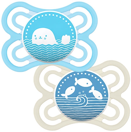 Bemærk: Motiverne samt farvenuancerne kan variere., Mærke: MAM, Type: Sut, Model: Perfect, Farve: Blå, Alder: 0+ mdr, Antal: 2 stk, Gtin: 9001616707322,, MAM Perfect 0+mdr Sut – 2 stk.