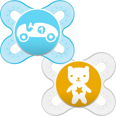 Bemærk: Motiverne samt farvenuancerne kan variere., Mærke: MAM, Type: Sut, Model: Start, Alder: 0+ mdr, Farve: Blå & Hvid, Antal: 2 stk, Gtin: 9001616706264,, MAM Start 0+ mdr Sut – 2 stk.