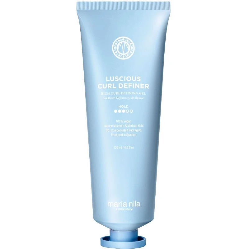 Maria Nila Coils og Curls Luscious Curl Gel er en stylingsgel designet til at fremhæve og definere naturlige krøller og bølger i håret. Denne gel er specielt udviklet til at tilføje struktur, medium, opbyggelig holdbarhed og glans til krøllet hår, samtidi, Maria Nila Coils & Curls Luscious Curl Gel 125 ml.