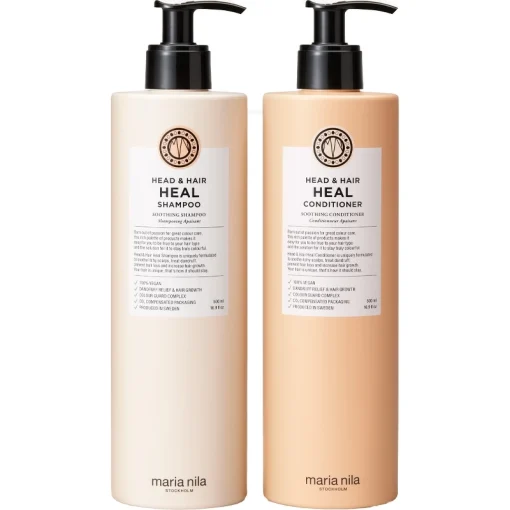 Maria Nila Head og Hair Heal Duo Shampoo og Conditioner er en sampak, som indeholder en shampoo og conditioner, der begge er udviklet specielt specielt til at forebygge hovedbundsproblemer og skæl. Både shampoo og conditioner er med indbygget pumpe, som g, Maria Nila Head & Hair Heal Duo Shampoo & Conditioner 500 ml (Limited Edition).