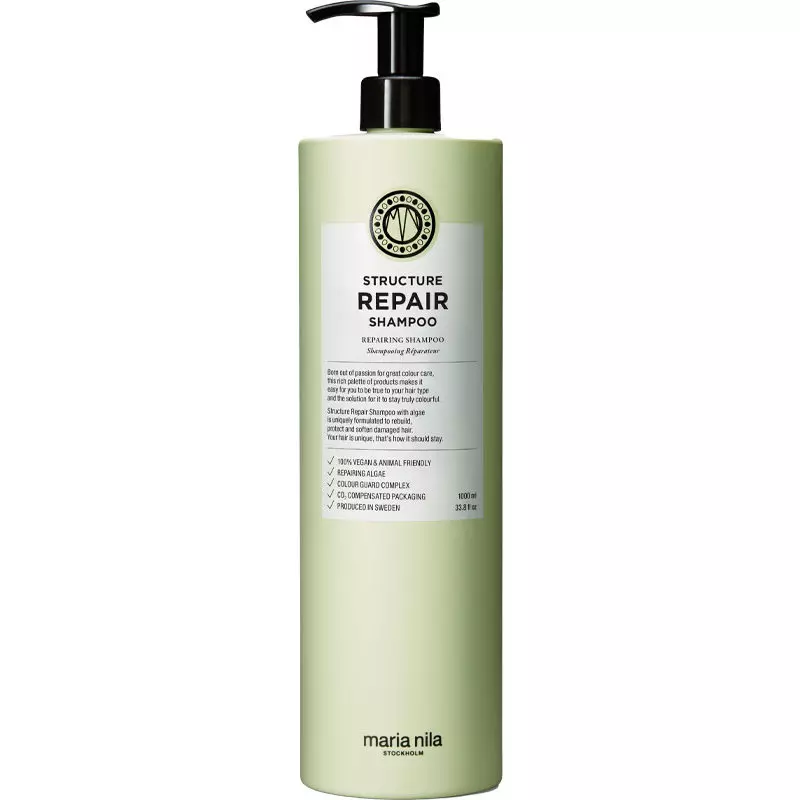 Maria Nila Structure Repair Shampoo er en shampoo, der er specielt udviklet til et skadet, tørt eller kemisk behandlet hår. Den giver fugt, samt virker genopbyggende og styrkende på hårets struktur. Den indeholder blandt andet algeekstrakt, som virker rep, Maria Nila Structure Repair Shampoo 1000 ml.